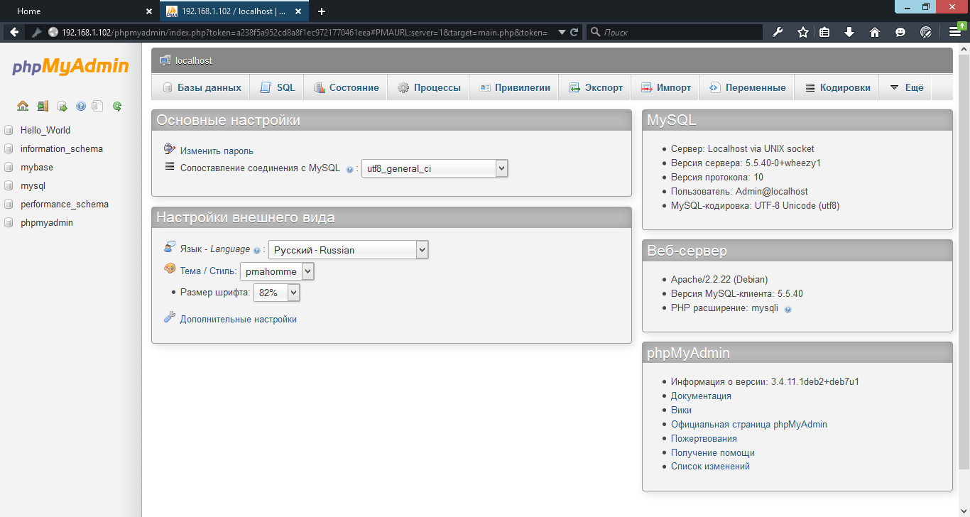 MySQL с графическим интерфейсом phpmyadmin