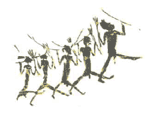 Охотники идут по следу или преследуют добычу, на бегу посылая в неё град стрел, наносят последний смертельный удар или удирают от разъярённого раненого животного. Тогда же появились изображения драматических эпизодов военных столкновений между племенами.