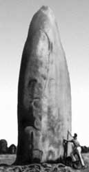 Менгир — мегалитический монумент, не связанный с погребальным ритуалом, представляющий собой одиночный камень, вертикально укрепленный в земле; его конкретное назначение до сих пор не выяснено, хотя часто связывается с религиозной практикой, например, с культом Солнца.
