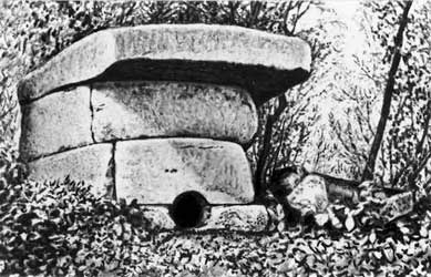 Дольмены - коллективные погребения, над которыми вертикально укреплялись два монолита, перекрытые горизонтальной плитой и засыпанные землей. Эти грандиозные сооружения из камня приобретают со временем все более определенные очертания, превращаясь, наконец, в постройки, где входу в просторную погребальную камеру предшествует узкий, как правило, коридор, ведущий в просторное помещение, обычно круглой формы и перекрытое ложным сводом, получаемым путем сближения рядов кладки. Мощные сооружения из камня, продолговатые в плане и более или менее определенной формы, которые некогда называли могилами великанов за их огромные размеры.