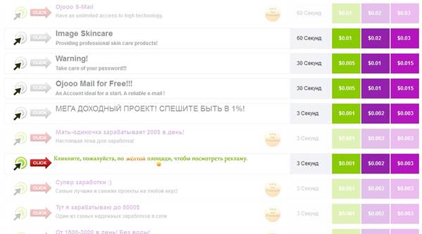 ПРИМЕР, ЕСЛИ ВЫ ПРИГЛАСИТЕ ПОД СЕБЯ 100 ЧЕЛОВЕК, В ДЕНЬ БУДЕТЕ ПОЛУЧАТЬ ОКОЛО 30-60 ДОЛЛАРОВ! В ДЕНЬ! ЕСЛИ ЭТИ ЛЮДИ БУДУТ АКТИВНО ПРОСМАТРИВАТЬ ОБЪЯВЛЕНИЯ)) ВСЕМ УДАЧИ. РЕГИСТРАЦИЯ ПЛАТЕЖНОЙ СИСТЕМЫ