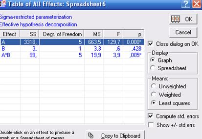 Таблица 6. Результаты двухфакторного дисперсионного анализа, проведенного с помощью приложения Статистика