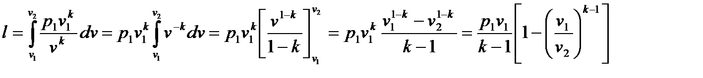 3. Работу изменения объема найдем по формуле (5.2), выражая p под знаком интеграла из (6.29) и принимая значение постоянной равным p1v1k: