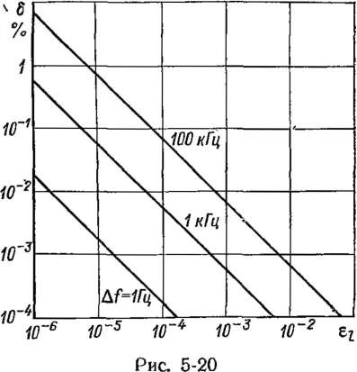 Тензорезисторы используются для измерения статических и дина При измерении динамических деформаций величина максимальной деформации для проволочных тензорезисторов не должна превышать б/ 0,1%, для полупроводниковых В/ ^ 0,02%, так как при больших деформациях резко понижается надежность тензорезисторов. Для повышения точности и чувствительности тензорезисторов, а также измерительных цепей к ним представляет интерес установление предельных возможностей тензорезисторов, определяемых термодинамическими флюктуаниями. Тензорези- стор является параметрическим преобразователем с внутренним сопротивлением R и может быть представлен в виде эквивалентного генератора с мощностью короткого замыкания РКш3 = Рте% = Рт (/(А)2, где Рт — мощность, потребляемая тензорезистором. Средняя мощность термодинамического шума равна Рш = 4kTAf, где k = 1,38-10"23 Дж/К — постоянная Больцмана; Т — абсолютная температура; Д/ — полоса частот. Отсюда средняя квадрэтическая погрешность находится в виде На рис. 5-20 представлены графики, отражающие зависимость погрешности 6 от величины деформации ez для Рт = 0,1 Вт и различных частотных полос при температуре Т = 300 К. ГЛАВА ШЕСТАЯ ПЬЕЗОЭЛЕКТРИЧЕСКИЕ ПРЕОБРАЗОВАТЕЛИ 6-1. ФИЗИЧЕСКИЕ ОСНОВЫ И ОБЛАСТЬ ПРИМЕНЕНИЯ ПЬЕЗОЭЛЕКТРИЧЕСКИХ ПРЕОБРАЗОВАТЕЛЕЙ