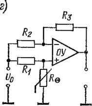 Часто одновременно с линеаризацией проводят также унификацию характеристик полупроводниковых терморезисторов, т. е. строят двухполюсники' с одинаковыми характеристиками при использовании в них терморезисторов с несколько различающимися параметрами. При этом измерительная цепь, естественно, усложняется. Один из возможных вариантов унифицирующей цепи показан на рис. 11-16, в. Сопротивление полученного двухполюсника определяется формулой Re = R3 + (Re + Rd RARe + Ri + ^2)- Путем подбора сопро-