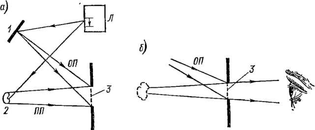 того чтобы восстановить предметную волну, необходимо направить на голограмму волну света, совпадающую с опорной волной, использованной при записи голограммы. Восстановленное изображение (рис. 12-8, б) является копией исследуемого объекта. Голография широко применяется как метод физических исследований. В частности, голография позволяет производить исследования вибрационного состояния тела. Если объект вибрирует во время экспозиции и длительность экспозиции превышает период колебаний, то на голограмме будут зарегистрированы волны, рассеянные этим объектом во всех состояниях, которые он последовательно проходит. Вклад в общую экспозицию различных положений объекта будет определяться скоростью, с которой объект проходит через эти положения. Минимальную скорость объект имеет в крайних положениях, соответствующих амплитудным значениям виброперемещений. Таким образом, вклад этих двух состояний в экспозицию будет максимален и приближенно можно рассматривать голограмму как соответствующую двум амплитудным положениям объекта, т. е. как голограмму, полученную методом двух экспозиций. При восстановлении голограммы изображение предмета окажется перерезанным интерференционными полосами, которые дадут представление о характере движения различных точек объекта. Точки, для которых разность хода предметных волн в амплитудных положениях объекта составляет :нечетное число полуволн, дадут минимумы интенсивности и будут соответствовать серединам темных полос. Точки, для которых разность хода составляет четное число полуволн, будут соответствовать серединам светлых полос. Максимальную яркость имеют неподвижные точки. Интенсивность светлых полос убывает по мерке увеличения амплитуды колебаний. Причина уменьшения интенсивности заключается в том, что в предметном пучке, отраженном от движущейся точки, происходит уширение спектра излучения АК по сравнению с опорным пучком. Это уширение, определяемое эффектом Допплера, будет тем больше, чем больше скорость движения точки, т. е. при заданной частоте колебаний чем больше амплитуда колебаний точки. Соответственно уменьшается время экспозиции, в течение которого точку можно считать условно неподвижной. Для расширения возможностей метода голографического исследования производится ряд усовершенствований. Ценность метода заключается в том, что он позволяет в реальном времени получить вибрационное поле значительной части объекта без механического или электрического контакта с ним. 12-2. ИСТОЧНИКИ ИЗЛУЧЕНИЯ Б измерительных преобразователях в качестве источников излучения используются лампы накаливания, газоразрядные лампы, светодиоды и лазеры. Основными характеристиками источников излучения являются характер свечения (непрерывный или импульсный), спектральный состав излучения, мощность излучения (световой поток, сила света, яркость), потребляемая мощность (напряжение и ток питания), габариты. Лампы накаливания имеют непрерывный спектр излучения, охватывающий видимую и инфракрасную области. Мощность излучения ламп накаливания относительно невелика, спектральный состав и интенсивность свечения зависят от температуры нити, определяемой напряжением и током питания. Характер свечения непрерывный. Параметры некоторых ламп накаливания, применяемых в измерительных п