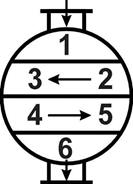 Схемы движения теплоносителей и положение перегородок в Распределительная камера: Задняя крышка: