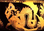 Вот эти плоды и приказал принести Эврисфей, и не для того, чтобы сравняться с богами. Он надеялся, что этого поручения Гераклу не выполнить. Накинув на спину львиную шкуру, перебросив через плечо лук, взяв дубину, бодро зашагал герой к саду Гесперид. Он уже привык к тому, что от него добиваются невозможного. Долго шел Геракл, пока достиг места, где на Атланте, как на гигантской опоре, сходились небо и земля. С ужасом смотрел он на титана, державшего невероятную тяжесть. - Кто ты? - спросил титан приглушенным голосом. - Я - Геракл,- отозвался герой.- Мне велено принести три золотых яблока из сада Гесперид. Я слышал, что сорвать эти яблоки можешь ты один. В глазах Атланта мелькнула радость. Он задумал что-то недоброе. - Мне не дотянуться до дерева,- проговорил Атлант.- Да и руки у меня, как видишь, заняты. Вот если ты подержишь мою ношу, я охотно выполню твою просьбу. - Согласен,- ответил Геракл и встал рядом с титаном, который был выше его на много голов. Атлант опустился, и на плечи Геракла легла чудовищная тяжесть. Пот покрыл лоб и все тело. Ноги ушли по лодыжку в утоптанную Атлантом землю. Время, понадобившееся великану для того, чтобы достать яблоки, показалось герою вечностью. Но не спешил забирать назад свою ношу Атлант. - Хочешь, я сам отнесу драгоценные яблоки в Микены,- предложил он Гераклу. Простодушный герой чуть было не согласился, боясь обидеть отказом оказавшего ему услугу титана, да вовремя вмешалась Афина - это она научила его отвечать хитростью на хитрость. Притворившись обрадованным предложению Атланта, Геракл немедленно согласился, но попросил титана подержать свод, пока он сделает себе под плечи подкладку. Как только обманутый притворной радостью Геракла Атлант взвалил на свои натруженные плечи привычную ношу, герой немедленно поднял палицу и лук и, не обращая внимания на возмущенные крики Атланта, отправился в обратный путь. Эврисфей не взял яблок Гесперид, добытых Гераклом таким трудом. Ведь ему нужны были не яблоки, а гибель героя. Геракл передал яблоки Афине, а та возвратила их гесперидам. На этом кончилась служба Геракла Эврисфею, и он смог вернуться в Фивы, где его ждали новые подвиги и новые беды.