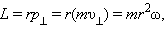 Здесь Момент импульса L по абсолютной величине равен произведению модулей векторов