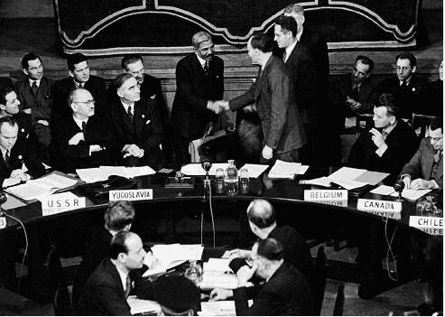 Совет Безопасности уполномочен «расследовать любой спор или любую ситуацию, которая может привести к международным трениям или вызвать спор, для определения того, не может ли продолжение этого спора или ситуации угрожать поддержанию международного мира и безопасности». Он «определяет существование любой угрозы миру, любого нарушения мира или акта агрессии и делает рекомендации или решает о том, какие меры следует предпринять … для поддержания или восстановления международного мира и безопасности». Совет имеет право применять принудительные меры к государствам, нарушающим международный мир и безопасность, в том числе связанные с применением вооружённой силы. Статья 25 Устава ООН гласит: «Члены Организации соглашаются, в соответствии с настоящим Уставом, подчиняться решениям Совета Безопасности и выполнять их». Таким образом, решения СБ являются обязательными для всех государств, так как в настоящее время членами ООН являются практически все общепризнанные государства Земного шара. При этом все иные органы ООН могут выносить лишь рекомендательные решения.[5] На практике деятельность СБ по поддержанию мира и безопасности заключается в определении тех или иных санкций против государств-нарушителей (включая военные операции против них); введении миротворческих формирований в зоны конфликта; организации постконфликтного урегулирования, включая введение международной администрации в зоне конфликта. Решения СБ (кроме процедурных) требуют 9 голосов из 15, включая совпадающие голоса всех постоянных членов. Это означает, что каждому из пяти постоянных членов СБ принадлежит право вето в отношении решений Совета. При этом воздержание постоянного члена от голосования не считается препятствием к принятию решения.