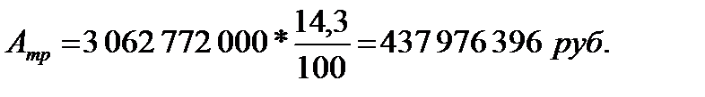 где Атр – амортизация транспортных средств, руб.; Ктр – балансовая стоимость транспортных средств, руб.; На – норма амортизации в процентах от балансовой стоимости транспортных средств, %, Для транспортных средств общего назначения На=14,3%