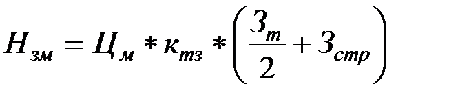 где Нзм – норматив запаса оборотных средств в запасах основных материалов, руб.; Зт – величина текущего запаса основных материалов, натуральные единицы измерения - тонны, куб.метры и т.д.; Зстр – величина страхового запаса, натуральные единицы измерения – тонны, куб.метры и т.д.; Цм – цена единицы материалов, руб./тонна, руб./м3 и т.д.; ктз – коэффициент, учитывающий транспортные заготовительные расходы 1,1.