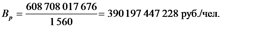 где Вр – производительность труда (выработка), руб./чел.; ВРпр – величина годового выпуска продукции в стоимостном выражении, руб.; Робщ – численность промышленно-производственного персонала, чел.