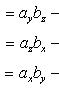 Проекции векторного произведения на оси прямоугольной системы координат вычисляются по формулам