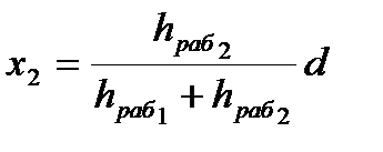 где d — расстояние между вершинами квадрата, внутри которого расположена точка нулевых работ; hраб1 и hраб2 — рабочие отметки соседних точек квадрата,