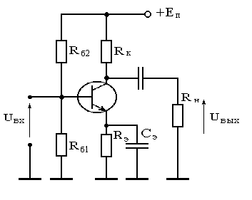 Найдём необходимое Еп для данной схемы: Е п= UR э+ U кэ0+ UR к=5+12+0=17 В. (12) Рассчитаем Rэ, Rб1, Rб2: