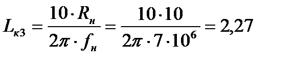 Найдём Lк, исходя из условий, что на нижней частоте полосы пропускания её сопротивление много больше сопротивления нагрузки. В нашем случае: