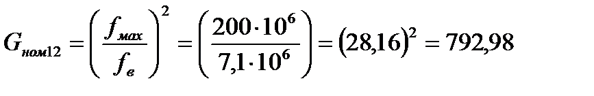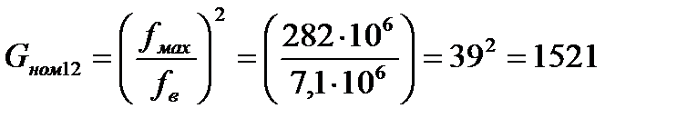 где fвТР – граничная частота транзистора. Таким образом fмах = Подставив в формулу (23) найденное значение максимальной частоты и верхнюю частоту заданной полосы, найдём усиление: