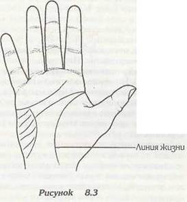 К удивлению, сердце ее не осталось разбитым. Любовь была настолько сильной и полной, что она чувствовала благодарность за то, что испытала такие чувства. Она понимала, что лучше любить и потерять, чем никогда не любить. Линии на ее левой руке, которые теперь закругляются на равнине Марса и спускаются к линии ума, представляют рисунок, отражающий эту историю (см. рис. 8.56). В результате любви к этому человеку она воплотила много своих творческих интересов. Она была хорошим лингвистом и решила поехать в Париж, где она стала преподавать английский язык, а также написала новеллу, темой которой послужила ее история любви. Хотя она и была опубликована, большого читательского интереса она не вызвала, но это позволило ей открыть в себе новые возможности. Она начала писать романтические новеллы. Они не являлись столь возвышенными произведениями искусства, чтобы ее друг умер от восхищения, но они имели успех — и в настоящее время у нее неплохое материальное положение. Также она встретила Пьера, занимающего высокий пост в индустриальной компании. Это уже не была безнадежная страсть первой любви, но она была откровенной и настоящей. Теперь они уже расписались и живут в доме на лесном холме недалеко от Версаля. Она знает, что, не расставшись со своей первой любовью, она никогда бы не отважилась поехать во Францию работать на себя. Эту энергию ей дала прошедшая любовь; и это открыло в ней стремление к путешествиям и к писательскому делу. Я поддерживаю контакт — рождественские открытки — с ее прошедшей любовью. На его руках линии, представляющие мою подругу, были волнистые и неясные, говорящие о том, что эта любовь действительно ни к чему его не привела бы. Его последующая жизнь также ни к чему особенно интересному не привела. Он не женился, достиг успеха в работе. Пытался писать в свободное время. Из этого ничего не вышло. Осталась только его преданность своим родителям, брату и сестре. Естественно, он никогда не занимался упражнениями, которые я вам даю. А моя подруга занималась. Вы тоже это можете. И вот как.