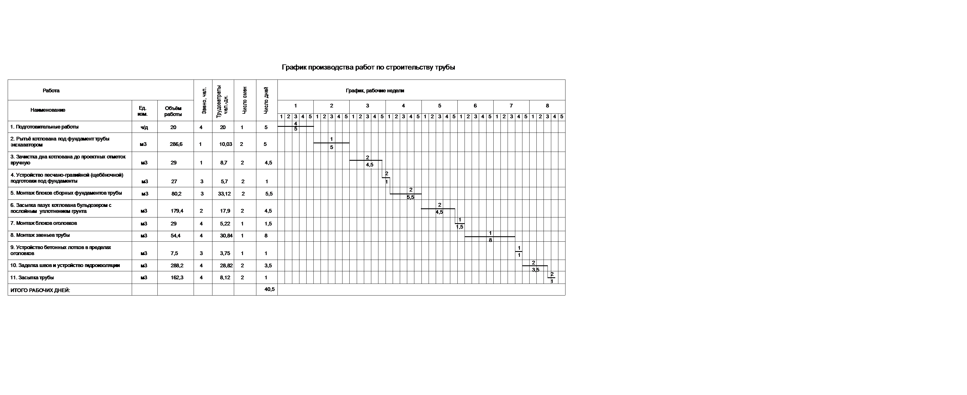 В курсовой работе нормативная трудоёмкость, чел.-дн, принимается по ведомости трудовых затрат (табл. 3.2). Проектная (плановая) трудоёмкость работ определяется по графику: