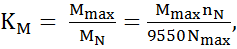 Способность двигателя автоматически приспосабливаться к изменению нагрузки и диапазона устойчивой работы характеризуется следующими коэффициентами: Коэффициент приспособляемости по моменту.