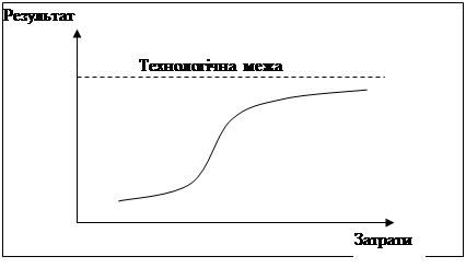 Аналіз технологічних меж ІТ-рішень ми почнемо з простого графіка. Прокоментуємо рис. 2.8. Під результатом розуміється натуральний показник, що характеризує обсяг ресурсів, наданих рішенням. Це може бути, наприклад, продуктивність, обсяг оперативної пам'яті, пропускна здатність і т.д. Звичайно даний об'ємний показник збігається з фактором витрат відповідного ресурсу. Під витратами розуміються грошові кошти, витрачені на впровадження і/або модернізацію ІТ-рішення, необхідні для досягнення відповідного значення показника результату.