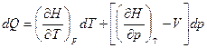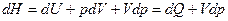 Если d (pV) = pdV + Vdp и pdV = = d (pV) – Vdp, а подстановка в выражение для I закона дает dQ = dU + d (pV) – Vdp = d (U + pV) – Vdp = dH -Vdp