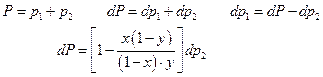 Уравнение Гиббса-Дюгема в расчете на 1 моль смеси: