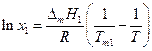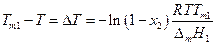 где Тт1 –температура кристаллизации чистого растворителя, Т – температура кристаллизации раствора, имеющего концентрацию растворителя х1. Так как