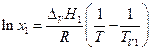 и Интегрируем в пределах от х1 = 1 до xi и TV1 до T и, полагая Δ V H1 не зависящей от температуры, имеем