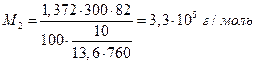 где М 2 – мольная масса полимера, g 2 – его навеска, V – объем растворителя. Например, раствор 1,372 г полимера в 100 мл воды имеет осмотическое давление 10 мм водяного столба, тогда (Т = 300 К):