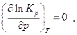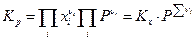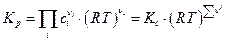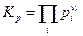 (Π –пи заглавное – символ произведения, как знак Σ – символ суммы). Мы видим, что произведение парциальных давлений компонентов в идеальной газовой смеси, где происходит химическая реакция, которая пришла к равновесию, является функцией только температуры. Это произведение обозначается как Кр и называется константой равновесия: