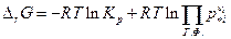 Таким образом в константу равновесия Кр входят только парциальные давления газообразных реагентов. Аналогично будет записана и энергия Гиббса химической реакции