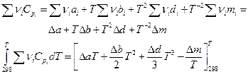 Так как Δ а, Δ b, Δ d и Δ m от температуры не зависят, то интегралы берутся без труда и