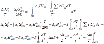 таким образом необходимо знать зависимость теплоемкостей участников химического процесса от температуры и тогда при температуре T > 298 K