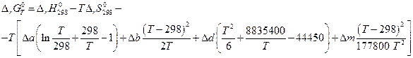 Точный расчет можно выполнить следующим образом (метод Темкина – Шварцмана, 1948). При температурах выше 298 К зависимость теплоемкости вещества от температуры аппроксимируется полиномом: