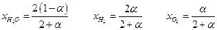 Степень диссоциации рассчитаем следующим образом. Если был взят 1 моль водяного пара, то после диссоциации α молей Н2О образовалось при равновесии α молей Н2 и