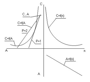 По результатам расчетов себестоимости обработки детали строится зависимость себестоимости от числа инструментов в наладке (