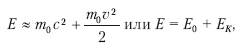 где E – энергия, m – масса частицы, m – масса покоя частицы, с – скорость света в вакууме. Из приведенной формулы видно, что для достижения скорости света частице нужно сообщить бесконечно большую энергию. Для фотонов и нейтрино эта формула несправедлива, так как у них v = c.