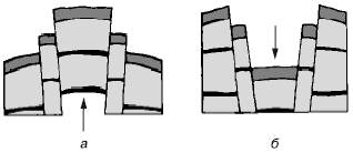 Рис. 7.6. а – сброс; б – надвиг Совокупности сбросов и надвигов составляют горсты и грабены (рис. 7.7).