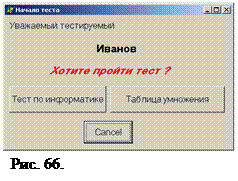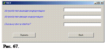 procedure TForm2.Button3Click(Sender: TObject); Begin Form6.Edit2.Text:=''; Form6.ShowModal; end; На третьей форме предлагается проути тест по информатике.