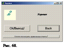 procedure TForm3.Button2Click(Sender: TObject); Begin Form3.Close; end; На следующей форме отображается результат тестирования и предложение о промотре ответа.