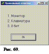procedure TForm4.Button3Click(Sender: TObject); Begin Form5.ShowModal; end; На следующей форме отображаются правильные ответы.