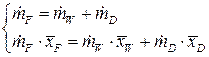 Массовые расходы исходной смеси, дистиллята и кубовой жидкости: