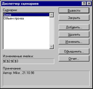 Рис. 10.4. Диалоговое окно Диспетчер сценариев