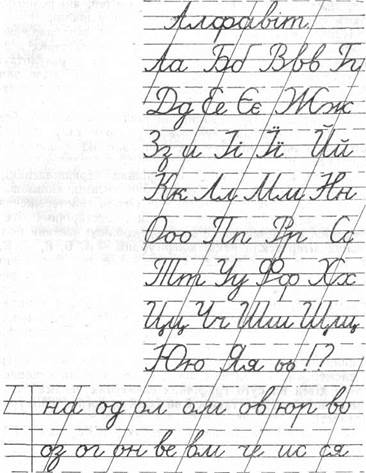 До недавнього часу в радянській початковій школі використовувався шрифт, який ніс у собі елементи дореволюційного каліграфічного письма, так званого краснопису. Однак сучасні засоби письма (кулькові ручки та чорнильні авторучки) не дають можливості дотримуватись його елементів. Крім цього, сучасні ритми життя, у тому числі й навчального процесу, поставили початкову школу перед необхідністю запровадити більш прості накреслення літер, які б певною мірою дозволили прискорити письмо. Деякого спрощення в конфігурації літер, у першу чергу пропис- них, вимагає також і зниження віку дітей, які розпочинають сьогодні систематичне навчання у школі. Навчальний рукописний шрифт, який запроваджено в Зошитах з письма, призначених для шестирічних першокласників, прийнято в нашій республіці у результаті кількарічної дослідної роботи по організації навчання шестирічних дітей у підготовчих класах загальноосвітніх шкіл. Цей шрифт розрахований на рівномірне письмо без натисків, здійснюване кульковою ручкою типу РШ-49 або учнівською авторучкою, заправленою фіолетовим чорнилом. Відомо, що в навчанні семирічних першокласників активно запроваджують безвідривне письмо, спрямоване на підвищення його швидкості. Однак спостереження за формуванням графічної навички у шестирічних дітей показали, що безвідривне письмо, особливо частини прописних літер ускладненої конфігурації — А, Б, В, Д, К, Н, Ю, у багатьох випадках непосильне для них. Воно вимагає від дітей непомірного напруження, що в результаті знижує не тільки швидкість, а й, головне, якість письма. У процесі запису складу чи слова дитині в окремих випадках легше відірвати перо від паперу, поєднати букви додатковим штрихом, частково відпочивши при цьому, ніж вести безперервну лінію. Особливо неприйнятним для шестиліток виявилось написання літер з елементами обведення ліній. Зосередження основної уваги дітей на суто графічних елементах письма негативно позначається також і на їхній орфографічній грамотності. У школах і дошкільних установах УРСР, у яких здійснюється навчання шестирічних першокласників, запроваджено навчальний рукописний шрифт (див. с. 70). Одним із найголовніших завдань Види робіт з письма уроків рідної мови В початкових в букварний період ^^ ^ формування у молод. ших школярів красивого, чіткого, каліграфічного і орфографічно правильного письма. Ці вміння починають активно формуватися в учнів у період навчання грамоти. На уроках письма, крім того, що учні оволодівають умінням перекодовувати звуки мовлення у букви, позначати їх на письмі рукописним шрифтом, вони засвоюють і такі важливі вміння орфографічного характеру, як позначення на письмі звуків у складах і словах (послідов-