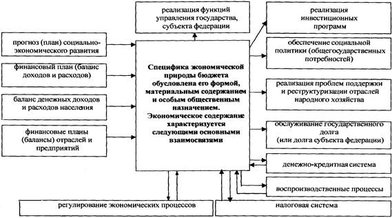 Рис. 2 «Функции финансов» Регулирующая функция связана с вмешательством государства через государственные расходы, налоги, государственный кредит в процесс воспроизводства. Распределительная функция заключается в распределении национального дохода между производственной и непроизводственной сферой, отраслями материального производства, отдельными регионами страны, формами собственности, социальными группами населения. Контрольная функция проявляется через деятельность финансовых органов, которые проверяют своевременное и полное выполнение финансовых обязательств перед бюджетной системой, налоговой службой, банками, а также взаимных обязательств предприятий по расчетам и платежам. Стабилизирующая функция заключается в обеспечении всех хозяйствующих субъектов и граждан стабильными экономическими и социальными условиями. Государственное воздействие на экономику в основном прослеживается через налоговую и таможенную политику, а также политику распределения денежных фондов государства. Ответственным по формированию и исполнению государственной политики в вышеуказанных областях, является Министерство финансов (сайт www.minfin.ru.), то есть государственный институт, управление которого направлено на финансы. Налоговая и таможенная политика – основана на фискальном аккумулировании средств в государственные денежные фонды для их последующего централизованного распределения. Политика распределения – основана на выборе приоритетов развития национальной экономики в целом и региональных экономик в частности, осуществляется на основе анализа и планирования экономического состояния секторов экономики. Осуществляется через бюджет и внебюджетные фонды. Наиболее полно специфика экономической природы бюджета отражена на рис. 3