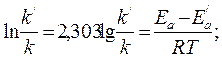 Подставляя в последнее уравнение данные задачи, выражая энергию активации в джоулях и учитывая, что Т = 298 К, получим
