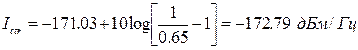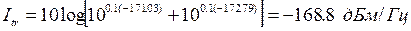 Iut =10log[10-9.671 – 10-10.665] - 10log(1.2288 · 106) = -158.07, дБм/Гц.