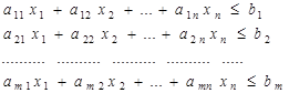 где bi - максимальное количество i – го ресурса, которое можно использовать в производственном процессе. Тогда систему неравенств (1) можно записать в кратком виде, используя правила векторной алгебры, представив левую часть неравенств как произведение матрицы А на вектор Х, а правую – как вектор В:
